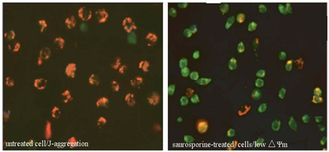 JC-1 是一種廣泛用于檢測(cè)線(xiàn)粒體膜電位△Ψm 的理想熒光探針??梢詸z測(cè)細(xì)胞、組織或純化的線(xiàn)粒體膜電位